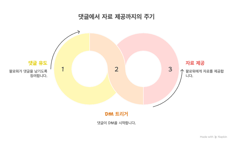 유저가 댓글 한 줄만 남기면 DM으로 자동 전달되는 구조를 통해 정보는 안전하게, 소통은 가볍게, 팔로워는 자연스럽게 늘릴 수 있습니다.